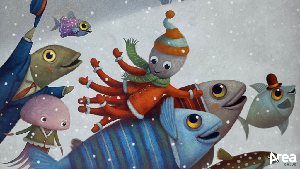 Il libro si rivela poi davvero speciale anche per un altro motivo: è uno dei primi, infatti, in cui si sperimenta l’uso di un font maiuscolo ad alta leggibilità, piacevolmente inserito all’interno di un albo illustrato. Nella proposta di una casa editrice attenta e lungimirante come Sinnos si legge dunque il tentativo di avvicinare serenamente i bambini dislessici alla parola scritta fin dai loro primi contatti con le pagine dei libri.