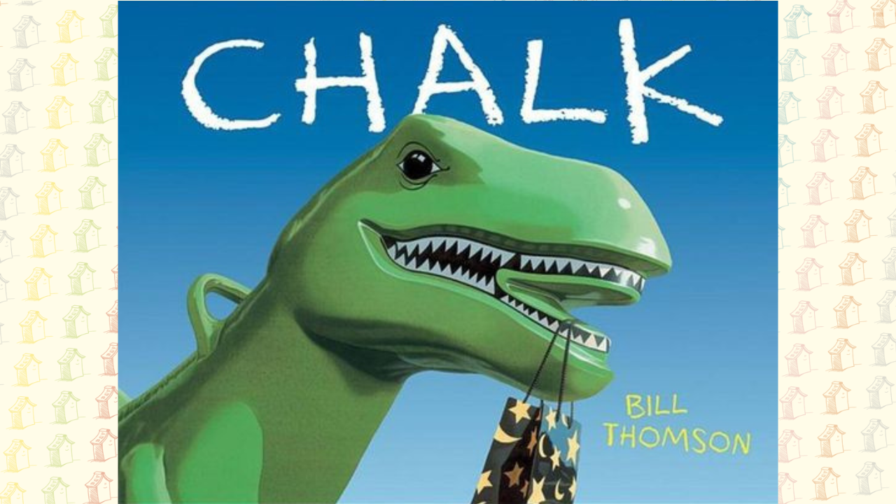 Racconta di tre bambini che in una giornata piovosa trovano un sacchetto di carta abbandonato in un parco giochi. Il sacchetto è appeso a un gioco a forma di dinosauro e dentro ci sono dei gessetti colorati. Piove forte ma la tentazione di usarli è grande. Grande almeno quanto la sorpresa di fronte a ciò che accade quando uno dei tre disegna un sole a terra. Un sole vero e abbagliante sbuca, infatti, immediatamente tra le nuvole non appena il disegno prende forma. Che sia un portento? I bambini non esitano a scoprirlo e si lanciano subito a testare gli altri colori. Ecco che, come sperato, fiori e farfalle invadano il campo da gioco. Bellissimo! Ma cosa succede se al posto di animali e oggetti innocui si disegna, chessò, un dinosauro? Succede che bisogna scappare, trovare rifugio, nascondersi… e trovare una soluzione creativa! Fortunatamente i bambini hanno ancora con sé i gessetti colorati e con un po’ di inventiva le cose possono tornare alla normalità. Fino al prossimo disegno…