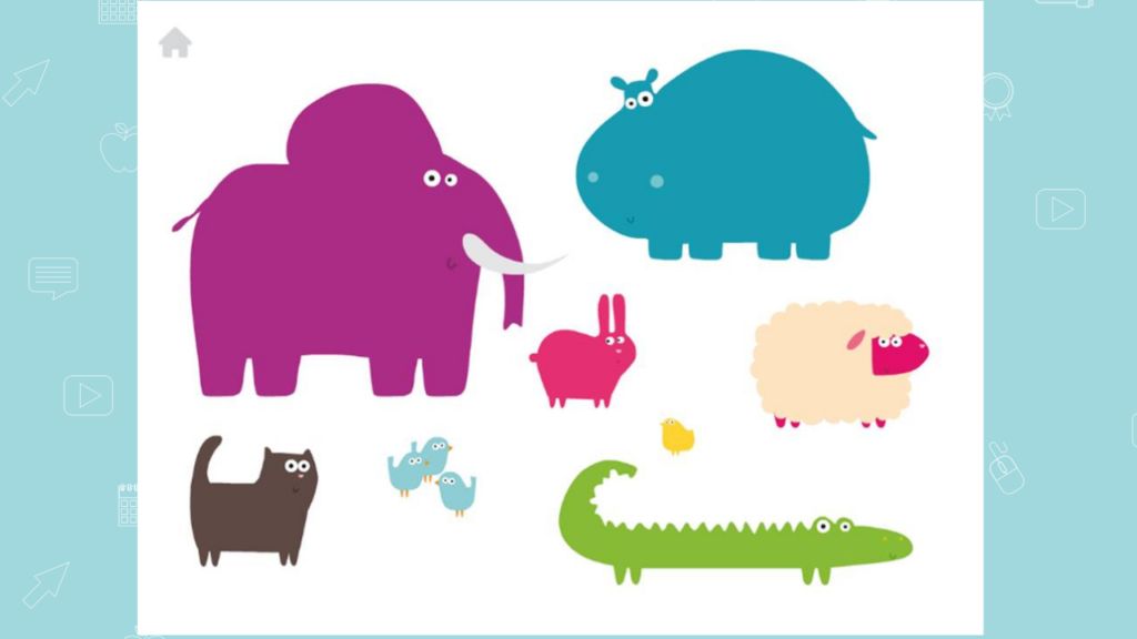 Di app in cui si gioca con forme e colori ce ne sono parecchie, ma in effetti sui contrari le proposte scarseggiano un pò, perciò è davvero apprezzabile il tentativo (riuscito!) di Tutto il contrario di Minibombo nell’aiutare i bambini a giocare con una dimensione semantica non sempre così facile da cogliere. Tutto il contrario è, a tutti gli effetti, un’app che, in linea con le altre proposte della casa editrice, aiuta il bambino a entrare in una dimensione ludica che favorisce la narrazione. Sullo schermo compare una barra orizzontale su cui indicare verso quale “contrario” trasformare il nostro animale per cambiarne aspetto, ma non solo: oltre infatti ai classici basso/alto, lungo/corto, vengono proposte dicotomie buffe e particolari come grave/acuto (riferito ai versi degli uccellini) ma anche in discesa/in salita, spettinato/pettinato, piatto/ondulato, …
