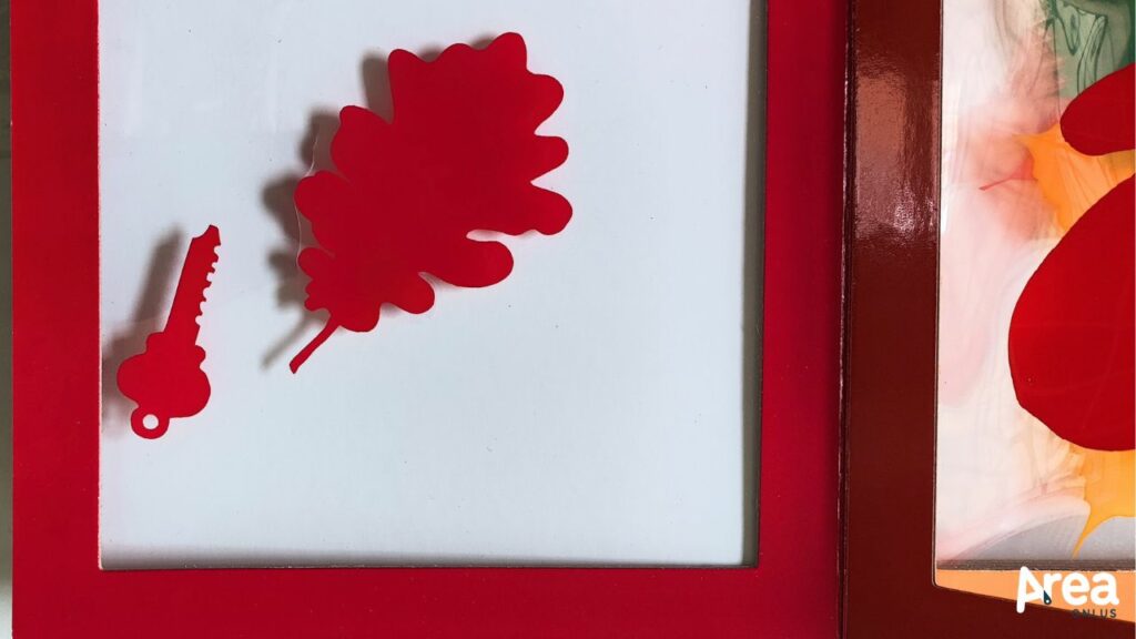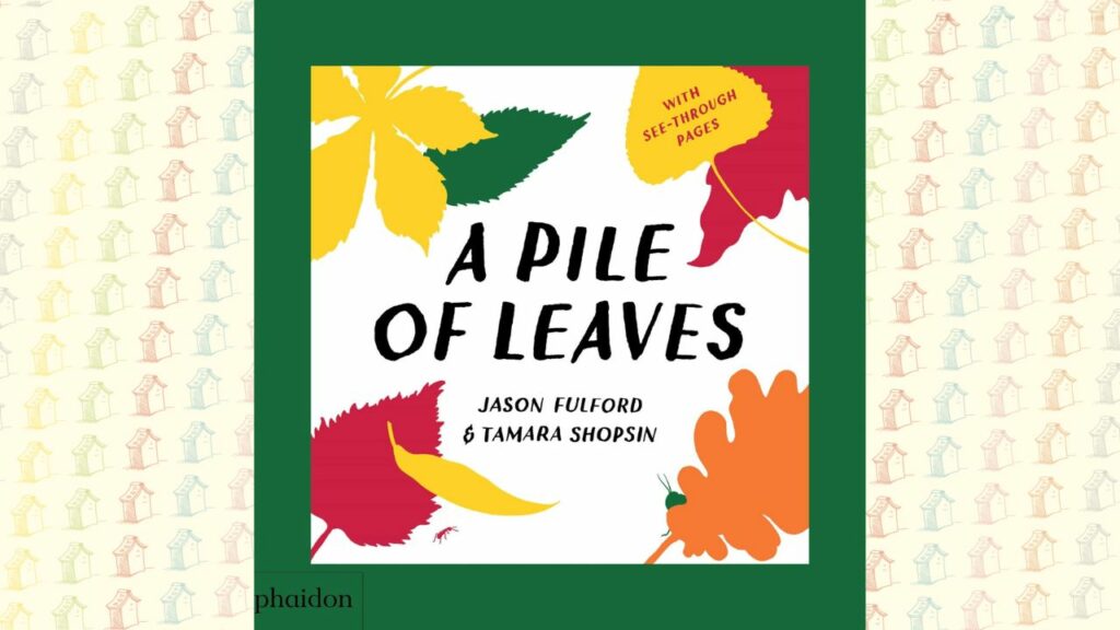 Composto da una ventina di pagine trasparenti su cui sono stampati in colori saturi e caldi foglie, insetti e oggetti di umana fattura, A pile of leaves invita di fatto ad aguzzare lo sguardo per studiare come cambia lo scenario man mano che le pagine vengono voltate. Come se si trovasse in effetti di fronte a un mucchio di foglie sovrapposte, il lettore vede e non vede ciò che c’è sotto e scopre dettagli prima celati o solo intravvedibili ogni volta che una pagina viene girata.