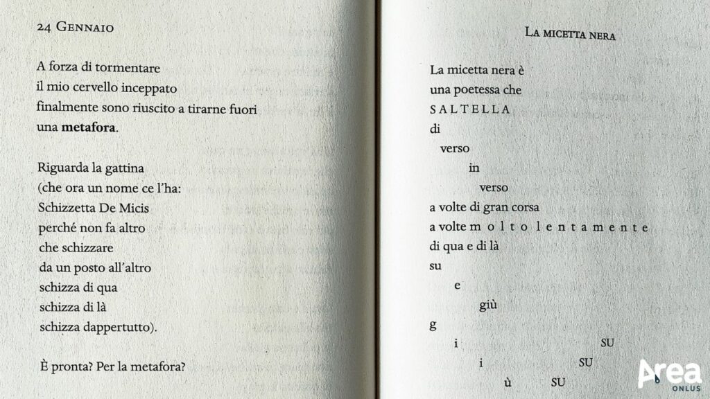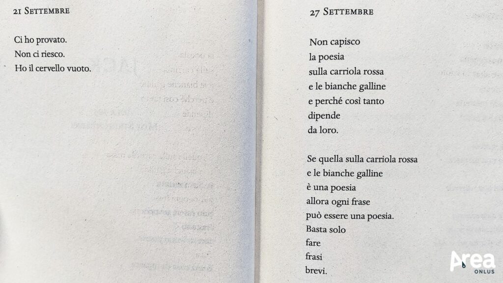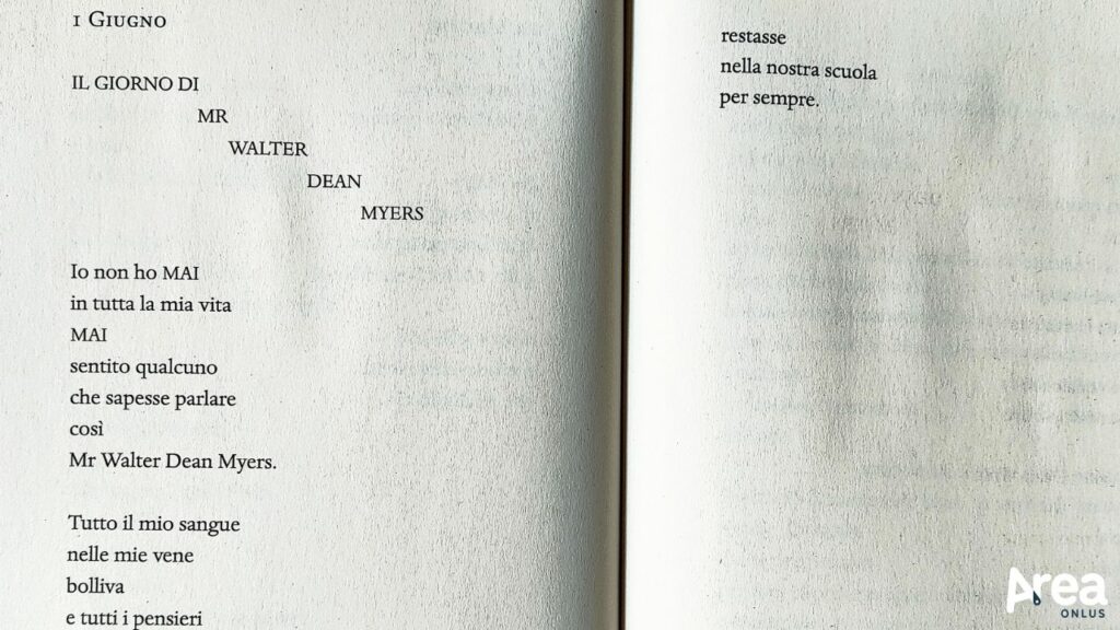 man mano che il racconto procede le cose cambiano. Non solo si affina, infatti, il suo modo di scrivere (con tanto di destreggiamenti tra poeti diversi e padronanza di allitterazioni e onomatopee) ma si consolida anche la sua consapevolezza rispetto alle possibilità espressive che la poesia racchiude. Ed è qui che entra in gioco anche il tema, seppur collaterale, della disabilità.