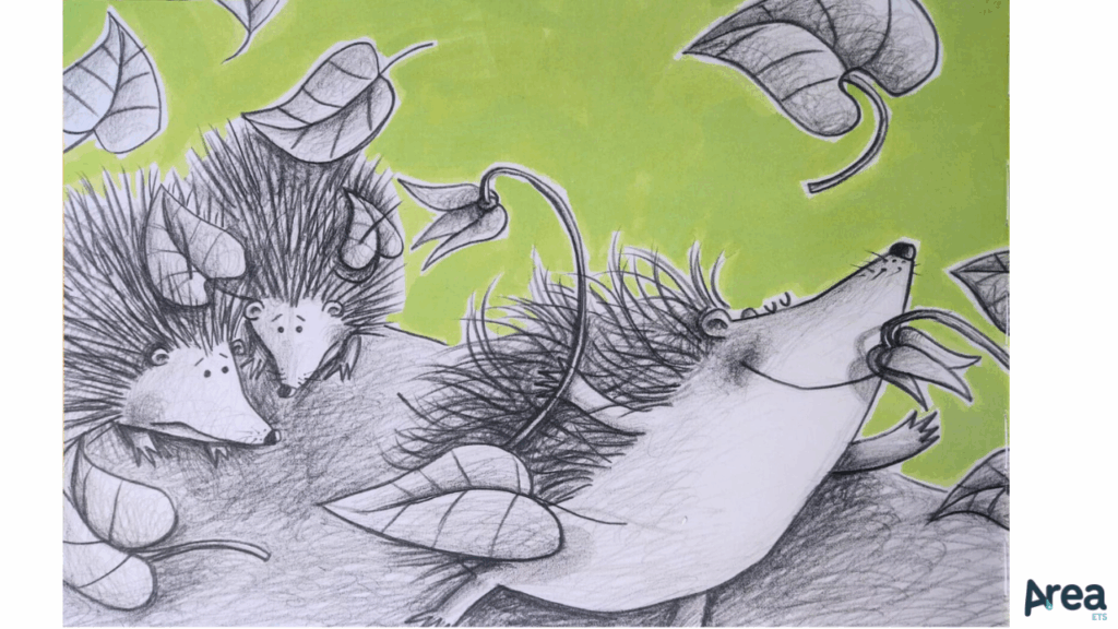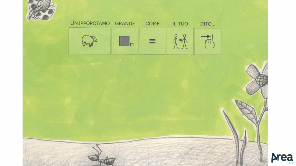 Le illustrazioni, dal canto loro, rimangono fedeli all’originale e si caratterizzano per figure ampie, in bianco e nero, prive di dettagli superflui e ben contrastate con lo sfondo colorato. Su quest’ultimo, là dove si trova più spazio, viene inserito in maniera armonica il testo che si contraddistingue per l’uso dello stampato maiuscolo e per l’affiancamento a simboli di dimensione apprezzabile. Aspetto, questo, che ne facilita senz’altro la lettura condivisa anche in piccolo gruppo.