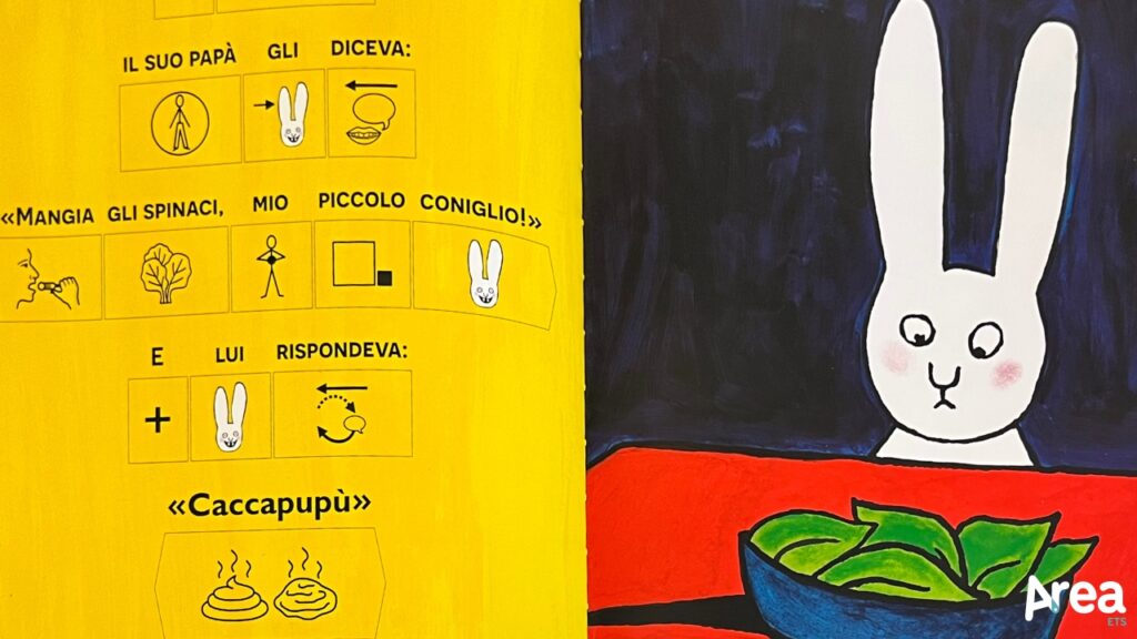 Simone, coniglietto irriverente creato da Stephanie Blake, compie quasi vent’anni. Eppure il suo modo di fare è così vero e fedele all’infanzia che difficilmente lo si sospetterebbe. Ecco perché il fatto che la sua prima avventura, portata in Italia da Babalibri nel 2006, sia ora resa disponibile anche in simboli da Officina Babùk, è notizia quantomai felice e attuale.