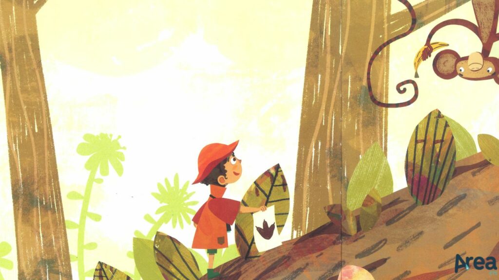 Quando un bambino curioso si mette qualcosa in testa può essere davvero difficile fermarlo. Prendete per esempio il protagonista di Chi è quest’orma?. Attrezzato come un provetto esploratore e munito di un foglio che riporta nei dettagli un’impronta di animale, questi inizia una ricerca a dir poco instancabile. Sorriso in volto e binocolo alla mano, il bambino avanza nella foresta interrogando ogni bestiola che gli capiti a tiro, sia questa un’innocua farfalla o un minaccioso serpente a sonagli. Nessuna sembra però corrispondere al titolare dell’impronta misteriosa, così al bambino non resta che avanzare. Su, su, sempre più su. Fino alla cima di quella che sembra una montagna ma che forse, a guardare da vicino, una montagna proprio non è. E poi ancora oltre. Fino a dove, sta al lettore deciderlo…
