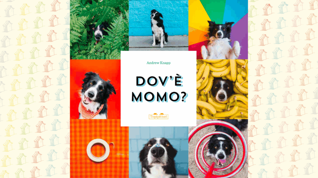Irresistibile Momo! Burlone, astuto e molto molto cool, Momo è un cagnolone che ama giocare a nascondino. Grazie all’intuizione del suo padrone, questa sua passione diventa un divertente e coinvolgente filo narrativo che invita il lettore a seguire e scovare il quadrupede nelle situazioni più disparate. Nel volume Dov’è Momo?, quest’ultimo si nasconde infatti in giardino e in camera da letto ma anche in luoghi ben più improbabili come il luna park, la biblioteca o la palestra. Ne vien fuori un libro che è una specie di viaggio e di caccia al tesoro: ogni doppia pagina presenta, infatti, sulla destra una fotografia in cui cercare Momo e sulla sinistra quattro riquadri con altrettante fotografie di oggetti, ciascuno opportunamente nominato, anch’essi da ritrovare all’interno della scena.