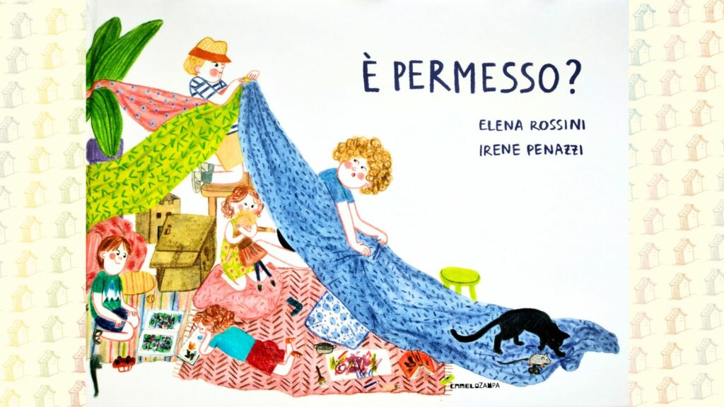 Non c’è forse gioco infantile più replicato e al contempo più moltiforme del progettare e costruire un rifugio. Cuscini, lenzuola, mobili e qualunque supporto capiti a tiro può contribuire a dare forma a tane e fortini in cui nascondersi, stipare proviste, condividere segreti e inventare avventure. Alzi la mano chi non l’ha mai sperimentato! Ecco allora che il libro di Elena Rossini e Irene Penazzi – È permesso? – che a questa comune pratica ludica è dedicato diventa per il lettore occasione di riconoscimento e spunto per nuovi allestimenti. Non solo: tra le pagine di questo libro in cui c’è tanto da guardare e poco da leggere, si trova una fitta trama di relazioni familiari e amicali che danno vita a micro-narrazioni e dettagli da trovare. È dunque un libro quasi senza parole, È permesso?, un simil-wimmelbuch e un libro che ha qualcosa del gioco: un libro decisamente ibrido, dunque, che come tale prometta ampia libertà di movimento e molteplici possibilità di esplorazione.