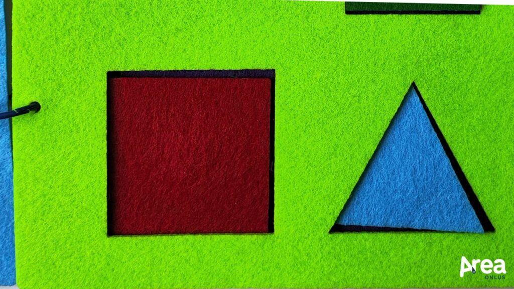 Al lettore viene perciò chiesto di riconoscere la corrispondenza tra sagoma e spazio vuoto e di provare riempire quest’ultimo con la sagoma corretta. Nella sua essenzialità massima – di forme, di grafica, di colori, di materiali – il libro offre dunque molteplici stimoli che vanno dall’identificazione di forme e colori, all’associazione tra vuoto e pieno, alla collocazione puntuale degli elementi a disposizione: un lavoro dunque ricco e multisfaccettato che coinvolge la dimensione cognitiva così come quella della motricità fine.