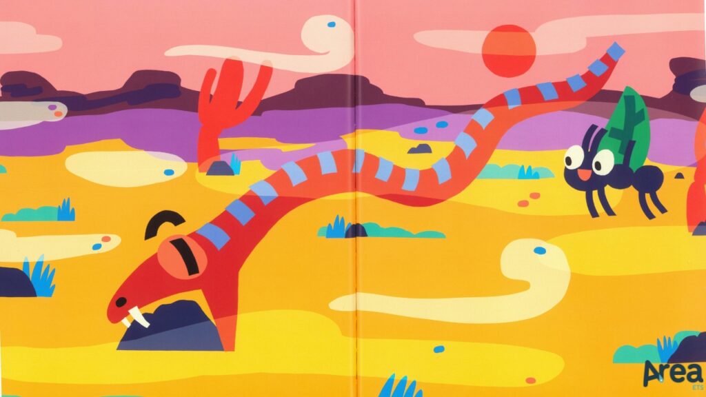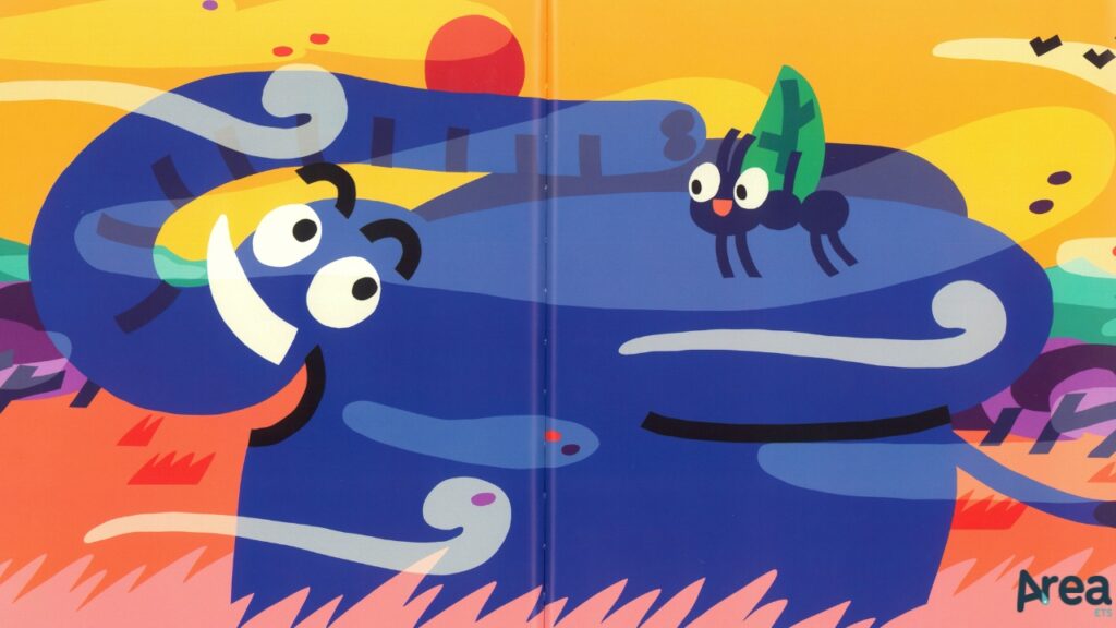 Firmato da Pino pace e da Irene Frigo per Bummy Edizioni, Forte il vento forte! è un libro senza parole che colpisce per la sua vitalità cromatica e per lo stile minimale delle figure. La storia dal canto suo è semplice e lineare anche se la costruzione narrativa risulta piuttosto ostica per il lettore. La struttura iterata dell’albo in due tempi (comparsa di un nuovo personaggio – effetto del vento su di lui), fino alla chiusura a sorpresa, crea un minimo di appiglio a cui affidarsi nell’attribuire significato alle immagini. Tuttavia, i colori espressivi e non basati sulla realtà, le forme poco dettagliate e la presenza di alcuni consistenti vuoti narrativi rendono complesse la decifrazione dell’immagine e la comprensione del racconto, richiedendo al bambino di mettere in campo abilità di inferenza e di decodifica visiva non scontate, soprattutto (ma non solo) in caso di disabilità cognitiva.