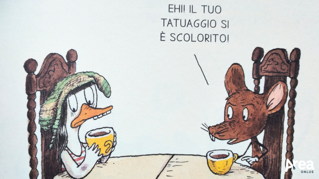 Protagonisti sono il gatto Mis e il topo Mus, già noti agli affezionati lettori di Sinnos grazie al volume Gli Acchiappacattivi. Amici per la pelle, i due coabitano in una casa da loro stessi fabbricata in cima alla collina e danno vita a mirabolanti invenzioni nel loro laboratorio supersegreto. Qui il loro legame si consolida giorno dopo giorno a suon di idee condivise e progetti costruiti a quattro mani. L’arrivo del tutto imprevisto di una papera sconosciuta di nome Pap, dal primo istante in grande sintonia con Mis e mal tollerata da Mus, incrina tuttavia quella che pareva un’amicizia inscalfibile e porta Mus a sperimentare una forma di paura forse nuova. Perché si può provare una paura concretissima e ben riconoscibile, come quella di non disporre di un rifugio sicuro o di cibo a sufficienza come ben descritto da Pap, ma si può anche provare una paura più nascosta e inafferrabile, che tocca in maniera sottile gli affetti e le sicurezze in cui ciascuno di noi si culla.  E così Mus si ritrova da un giorno all’altro a covare un certo astio verso la papera che minaccia di portargli via la sua speciale amicizia con Mis, al punto da allontanare malamente l’intrusa con la prodigiosa scacciacani (che oltre a funzionare bene con i gattacci funziona evidentemente benissimo anche con i pennuti). Ed è a questo punto che ci aspetterebbe una chiusura politically correct fatta di scuse reciproche e chiarimenti, legami nuovi e legami rinsaldati, amicizie a due che diventano serenamente amicizie a tre. E invece no. È proprio qui, invece, che la storia ci semina con un guizzo inatteso, dando spazio a sentimenti negativi e azioni disonorevoli – la disillusione, l’inganno, la delusione – da cui, tuttavia, non è detto che qualcosa di buono non si possa comunque inventare. Parola di Inventatutto!