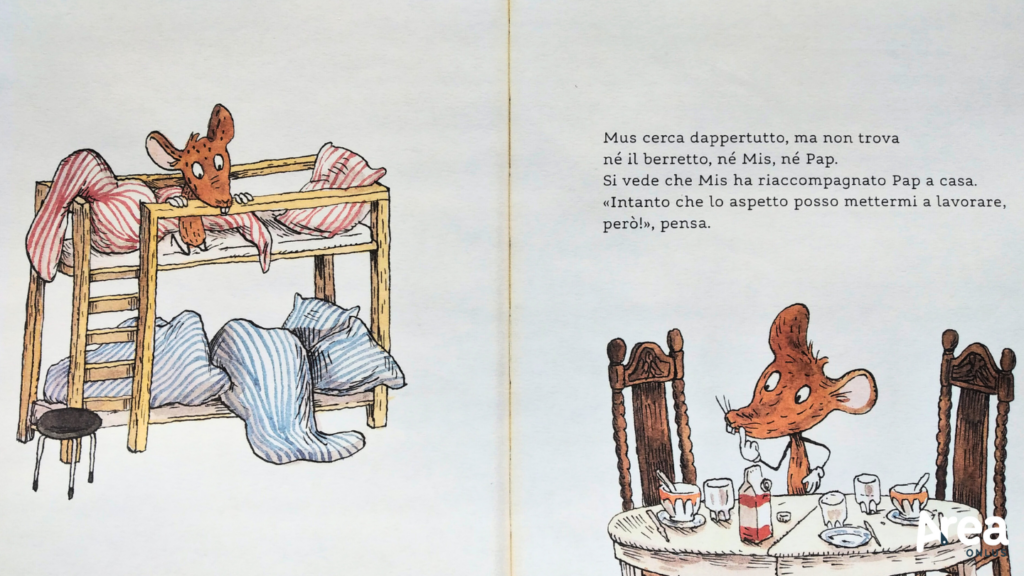 Contraddistinto da una storia ben ritmata e dalla fotografia di sentimenti molto vicini all’esperienza dei lettori, Gli inventatutto ripropone la forma grafica vincente del primo episodio dedicato a Mis e Mus. Anche qui, infatti, le più classiche caratteristiche di alta leggibilità – font, spaziatura, sbandieratura, frequenza di illustrazioni – si accompagnano alla scelta di mescolare racconto e fumetto (pur senza balloons visibili) e di prediligere illustrazioni ricche di dettagli in cui sostare con gusto, così da offrire un’occasione di lettura davvero accessibile a accattivante anche per bambini con difficoltà legate ai disturbi specifici dell’apprendimento.