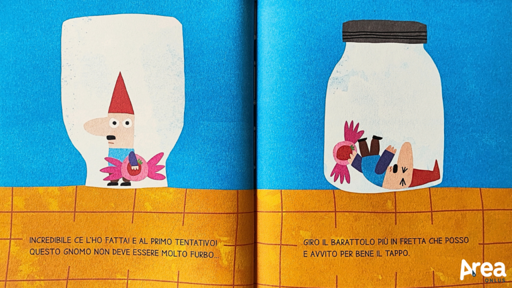 Molto divertente, per come è costruito e per come ribalta il comune immaginario che vuole gli gnomi creature di straordinaria gentilezza, Ho catturato uno gnomo è un libro dalle figure buffe e dai testi incisivi. Brevi, in stampatello maiuscolo e in numero limitatissimo per pagina, questi accompagnano con ironia le illustrazioni a mezza o a tutta pagine, cui è affidato il ruolo trainante nella narrazione. Anche per questo aspetto, oltre che per le caratteristiche di alta leggibilità che contraddistinguono il volume, il libro di Alberto Lot si candida a offrire una lettura accessibilissima e accattivante a lettori alle prime armi, anche poco propensi a tuffarsi tra le pagine.