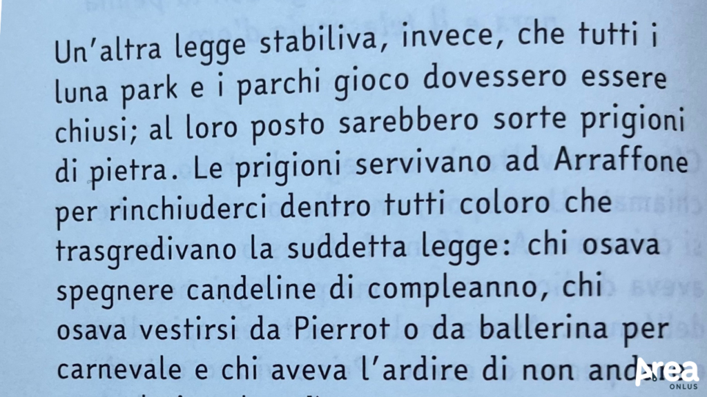 C’è un re odioso che più odioso non si può che si chiama Arraffone I. Sovrano dispotico del regno di Uranopoli, Arraffone I si diletta a scrivere con la sua penna di corvo spaventose leggi: domeniche che diventano prelunedì, parchi giochi sempre chiusi, candeline di compleanno bandite e multe per grattate di naso o starnuti, solo per citarne alcune. Se si aggiunge poi che Arraffone I non esita ad appropriarsi di qualunque cosa veda col suo telescopio e gli piaccia, si capisce bene perché i suoi sudditi a dir poco lo detestino. Ma ad Arraffone quest’odio proprio non va giù: come ogni sovrano che si rispetti, vuole, infatti essere amato, adorato e perché no osannato dai suoi sottoposti. E così, quando uno dei suoi consiglieri suggerisce che il malumore sia dovuto al fatto che i sudditi la notte sognano, Arraffone I si adopera per impedir loro questa pratica e lo fa a suon di leggi, guardie, pedaggi e invenzioni malvagie. Per mezzo di speciali cuscini diabolici il re riesce per un po’ a tenere a bada il popolo indisponente, fino a quando un maestro intraprendente e i suoi solerti allievi non tiran fuori da fili di fiabe, tulle di bonboniere, piume di cigno e anelli di aquilone un’autentica magia che restituisce agli abitanti di Uranopoli la capacità e il diritto di sognare in pace.