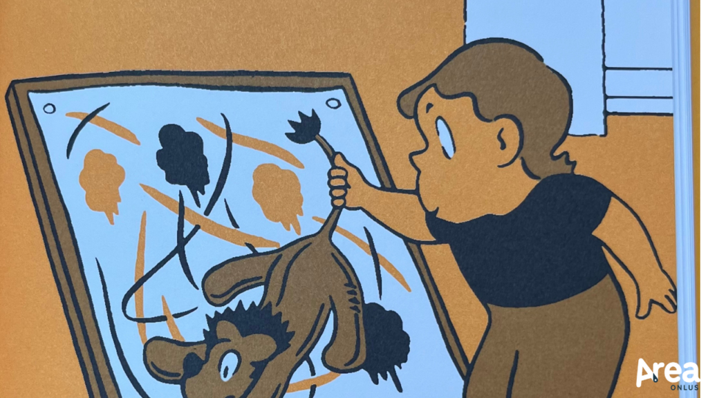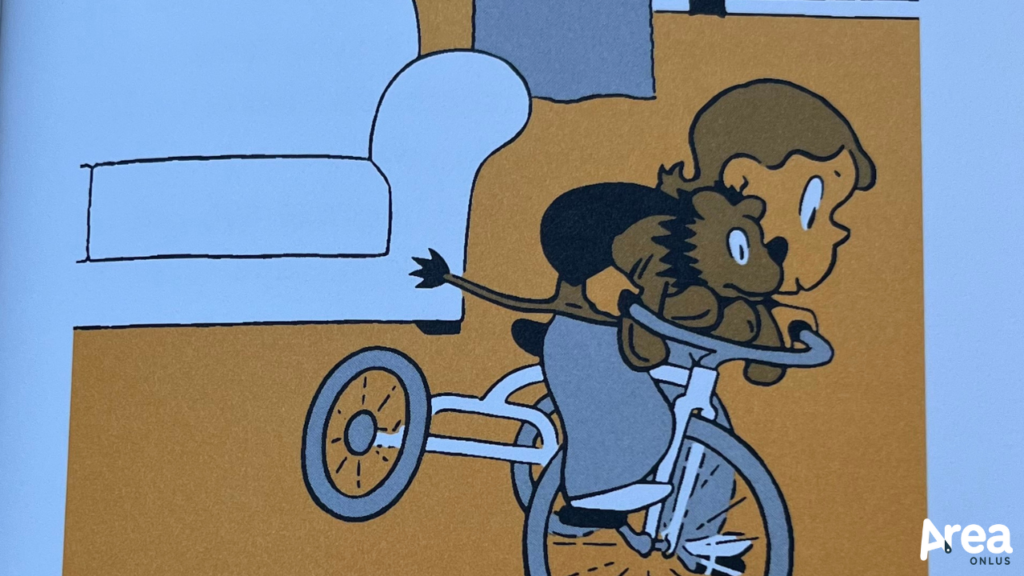 Ciò che rende, poi, davvero irresistibili le vicende descritte da Crockett Johnson è la dinamica dialogica che si instaura tra i due protagonisti. Come quando Ellen invita il leone a raccontare le sue avventure prima del loro incontro e poi si complimenta con lui per una storia che lei stessa ha raccontato, quando gli intima di stare fermo e zitto (più di quanto un pupazzo già non faccia) per poter leggere in santa pace, quando lui dichiara di non saper ruggire ma lei ha già organizzato uno spettacolo circense da migliaia di spettatori o quando lui si lamenta di esser stato dimenticato nella neve e lei trasforma l’inconveniente in un’artistica impresa invernale. Allo stesso modo, lo scarto tra i voli fantastici compiuti ad alta voce dalla bambina e le considerazioni terra terra che aggiunge il leone generano un corto circuito ironico di fronte al quale trattenere il sorriso è impresa ardua.