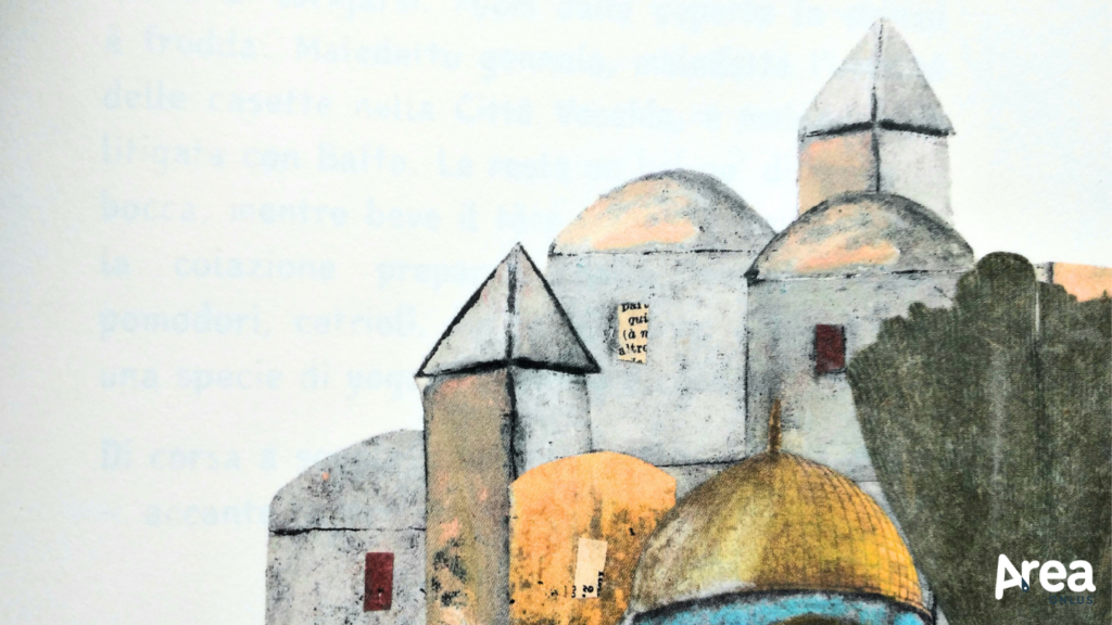 Il volo di Nura, dal canto suo, anticipa bene le qualità della collana, presentandosi come un volume raffinato dalla copertina rigida, dall’impaginazione ariosa e dalle illustrazioni suggestive. La storia che contiene è quella della giovane Nura, amante del racconto orale e animata da un sentimento misto di incanto e timore nei confronti dello zio Abu-Elias da tutti apprezzato come cantastorie. Anche Nura vorrebbe seguire le sue orme ma la tradizione non prevede una simile carriera per le donne. A trasformare il sogno della bambina in una realtà adatta a tempi moderni, sarà l’incontro onirico con un personaggio misterioso e un po’ inquietante: un baffo parlante di Abu Elias. In sua compagnia, Nura compie un viaggio notturno sulla città di Gerusalemme scoprendone da una prospettiva insolita bellezze e ferite e trovando nella cultura profonda che la città custodisce l’ispirazione necessaria per seguire il suo destino.