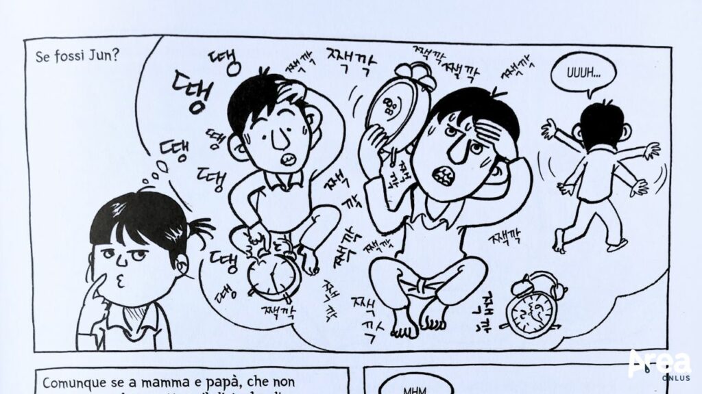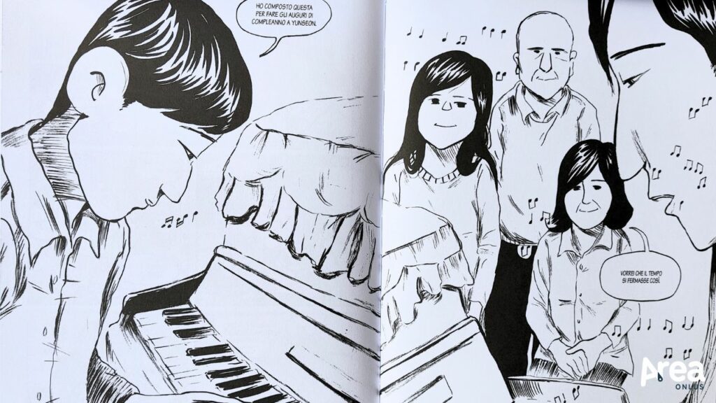 A raccontarci la storia di Jun è sua sorella Yunseon. La sua voce è lucida e viva, capace di dare voce senza cedere al sentimentalismo, a un amore viscerale e una quotidianità faticosa. Costantemente combattuta, come spesso accade, tra il desiderio di prendersi cura del fratello e la sensazione di essere sempre in secondo piano nelle priorità familiari, Yunseon prova con tutte le sue forze a riconoscere in Jun il ragazzo prima del disabile. L’apparente rudezza che talvolta contraddistingue i suoi atteggiamenti nei confronti del fratello è frutto di questo sforzo e spesso si contrappone alla premura totalizzante e ansiosa della mamma. Due modi di amare, due modi di prendersi cura. Grazie e entrambi, Jun trova pian piano la sua strada e il modo di valorizzare il suo talento, rendendo chiaro a chi gli è caro così come a chi legge l’inutilità di ogni tentativo di aggiustamento dell’autismo.