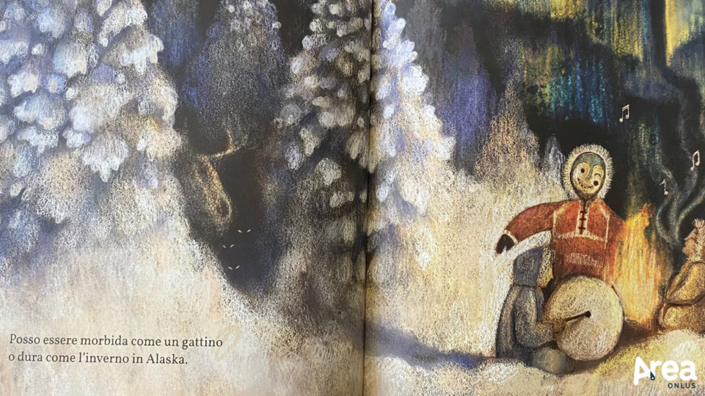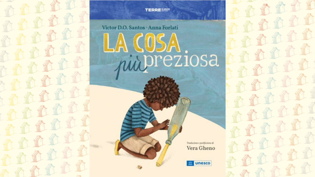 Il libro di Victor D.O. Santos e Anna Forlati è proprio uno di questi. Qui la protagonista è una cosa preziosa – quella più preziosa addirittura, stando al titolo dell’edizione italiana (la cosa che ci rende umani, per affidarci in maniera più letterale al titolo dell’edizione originale) – qualcosa che risale a moltissimo tempo fa, che si può trovare dappertutto, che si impara pian piano e che permea le nostre giornate, che è mutevole e multiforme e che può fare cose davvero straordinarie. Protagonista del libro è – svelando l’arcano – la lingua, o meglio l’insieme delle lingue che animano il mondo. Il libro ne rivela l’identità solo nell’ultima pagina costruendo nelle pagine precedenti un ritratto per immagini e parole evocative che ne fanno emergere tutta la forza. Il libro si pone dunque come un omaggio a qualcosa che è molto presente nella nostra storia e nella nostra vita, senza che spesso ce ne accorgiamo o che gli attribuiamo la dovuta importanza. Gli autori ne costruiscono l’identikit in maniera efficace, attraverso riferimenti sempre più evidenti e attraverso piccoli indizi visivi che aiutano a trovare la soluzione prima che questa venga esplicitata.