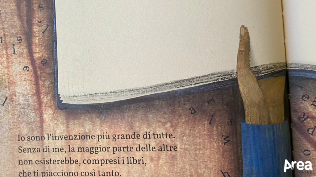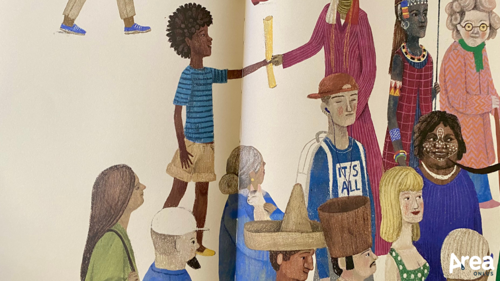 Ma come si colloca la disabilità in questa cornice? In una maniera molto rispettosa e significativa. Dal libro emerge infatti che si può comunicare in tanti modi diversi e ciascuno di essi è messo esattamente sullo stesso piano. Parole, segni, punti, icone trovano posto, cioè, con pari dignità e questo non è poca cosa se si considera il fatto, per esempio, che solo nel 2021 la LIS è stata riconosciuta come lingua a tutti gli effetti nel nostro paese. Mettere per iscritto e raccontare con le immagini che la lingua ha tante forme, che si può vedere, sentire o percepire, significa a tutti gli effetti fare e promuovere l’inclusione. E significa farlo con un mezzo potente. Rappresentare inoltre sulla pagina persone che segnano o che si orientano con un bastone bianco significa contribuire a rendere la disabilità reale, presente. Anna Forlati, già apprezzata per le illustrazioni di Se un bambino, è molto brava in questo: la varietà del mondo passa con delicatezza attraverso le sue matite che suggeriscono senza urlare e arricchiscono ogni tavola di citazioni, rimandi e guizzi inventivi forieri di spunti e significati da scovare.