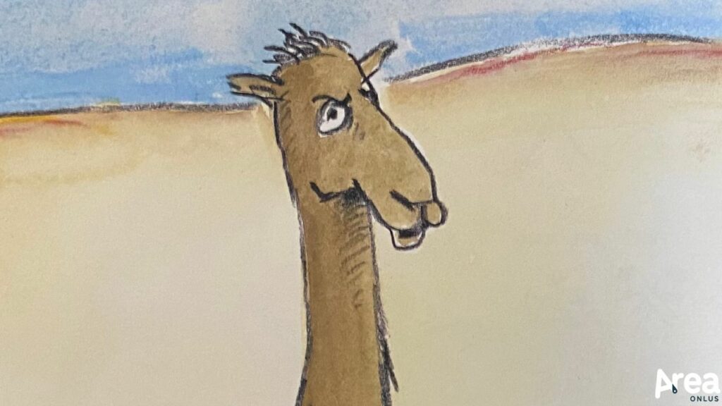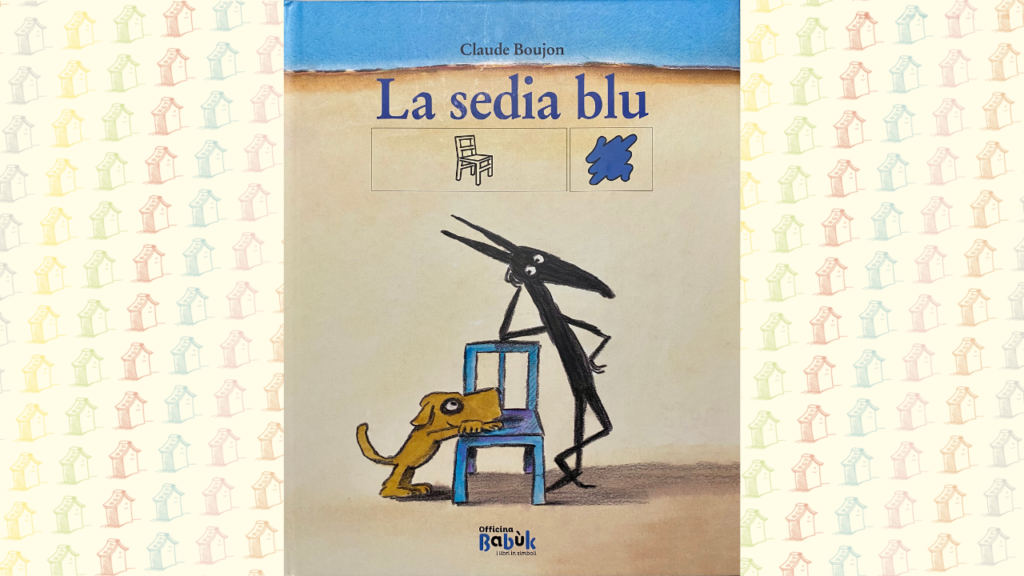 La sedia blu, curato nei testi come nelle figure da Claude Boujon, è dal canto suo un albo illustrato molto ironico, a tratti surreale ed estremamente aderente all’approccio dei bambini alle cose del mondo. I due protagonisti – due cani di nome Bruscolo e Botolo – trovano un’insolita sedia blu in mezzo al deserto in cui vivono e subito ne fanno il fulcro di un appassionante gioco simbolico. In un crescendo immaginativo, quella semplice sedia diventa, infatti, un rifugio, una barca, un bancone e un versatile strumento circense. Fino a quando i due non vengono redarguiti da un severissimo camelide che tutto può approvare fuorché un uso così divertente e divergente di una sedia. Ai due non resta che andarsene – ché chi ha fantasia, in fondo, un oggetto consono al gioco lo trova facilmente – non prima però di aver lanciato una spassosa e irriverente stoccata al gobbuto bacchettone.
