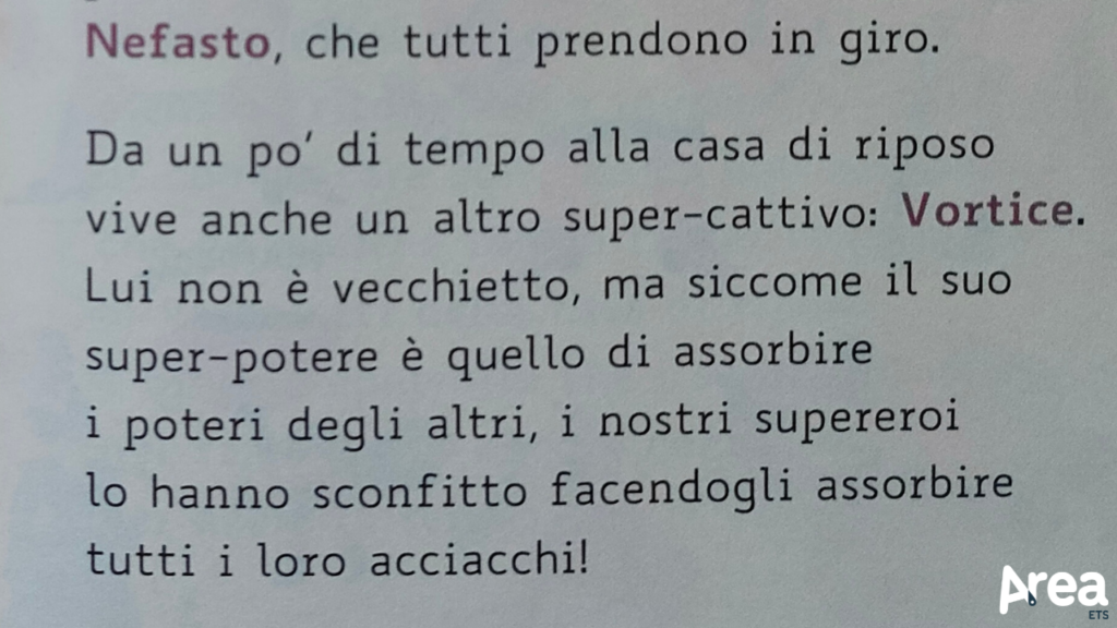 Divertente e ricco di trovate sorridenti, in pieno stile Davide Calì, La supergita dei supereroi offre un racconto snello e abbordabile che sostiene anche i lettori più riluttanti o con difficoltà legate alla dislessia, e lo fa con il superpotere dell’irriverenza e dell’alta leggibilità. Il font biancoenero, le frasi brevi e lineari, la spaziatura maggiore e le illustrazioni quasi a ogni pagina agevolano infatti la lettura e fanno squadra con una narrazione ironica che solletica e che invita ad arrivare presto alla fine. La possibilità, inoltre, che il lettore abbia già familiarizzato con i personaggi grazie alla precedente avventura sempre edita da Biancoenero, fa sì che l’ingresso nella storia sia più immediato e coinvolgente. Interessante, in questo senso, anche la scelta di proporre figure che richiamano felicemente lo stile del precedente volume (firmato per intero da Davide Calì), pur essendo realizzate in questo caso da un’illustratrice diversa (Alice Piaggio).