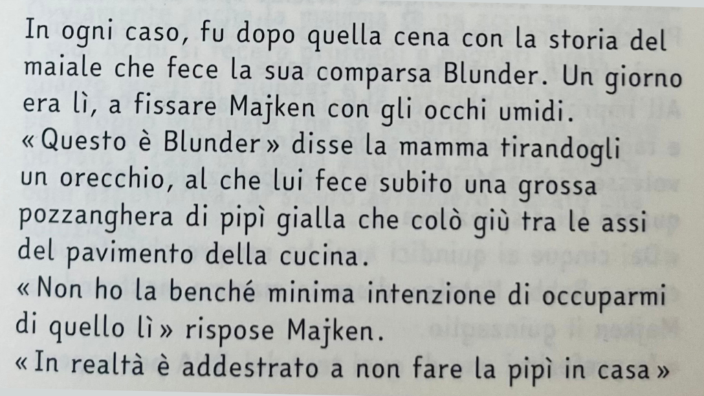 Non è facile affrontare le giornate quando i pericoli – dall’inquinamento agli incidenti aerei, dai malintenzionati ai cibi poco sani – sembrano nascondersi minacciosamente dappertutto e diventano un chiodo fisso. Così è per la dodicenne Majken che, con fare più vicino a quello di un’anziana che non a quello di una ragazzina, formula pensieri molto maturi e nient’affatto privi di allarmismo. Nella sua vita non c’è spazio – sembrerebbe – per frivolezze preadolescenziali, amicizie del cuore e pomeriggi spensierati: tutte cose che poco le interessano e che giudica per di più sciocche. Questo suo modo di porsi di fronte al mondo, che agli occhi del lettore e dei coetanei oscilla tra lo strambo e l’assillante, preoccupa non poco la madre, con la quale Majken vive sola e che un giorno, per convincerla a uscire, a distrarsi e a socializzare, le regala un cagnolino di cui occuparsi. È un cane bruttarello e indisciplinato, Blunder, ma il suo arrivo segnerà una svolta nella vita della ragazzina, consentendole di fare incontri preziosi e di incrinare la solida gabbia emotiva dentro la quale si è da tempo rinchiusa.