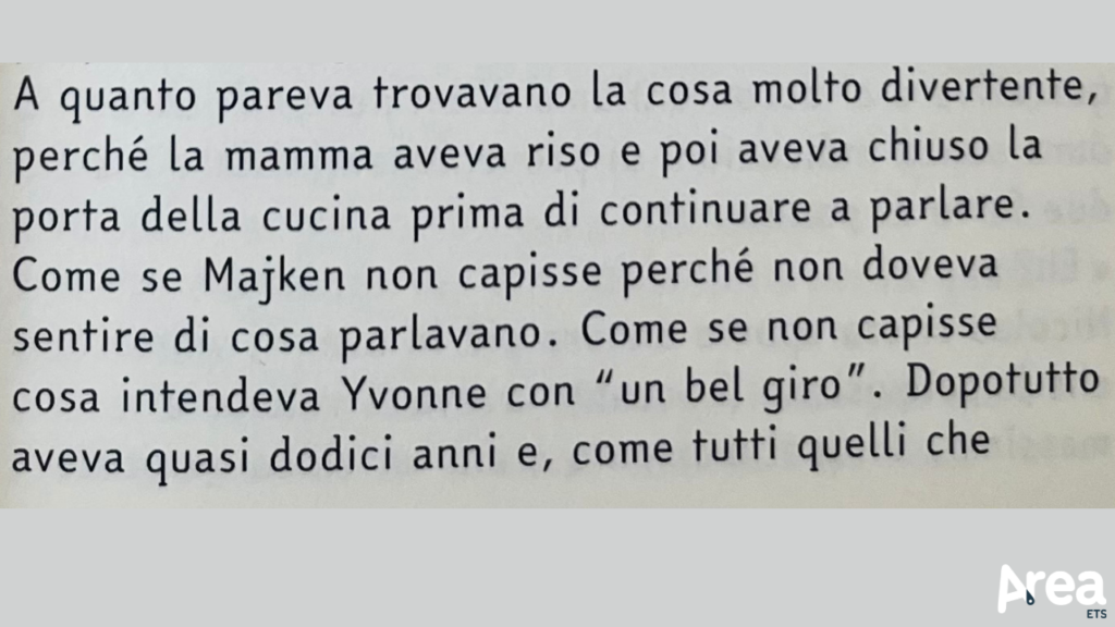 Con una narrazione che, seguendo il filo dei pensieri di Majken, dipinge il mondo con un filtro diverso da quello comune, Cilla Jackert ci fa affezionare, spesso scuotere la testa, talvolta chiedere “ma come ti viene in mente?” di fronte a una protagonista tanto bizzarra. Fino all’ultimo capitolo, dove un finale liberatorio, tanto per Majken quanto per chi legge, ci conduce nel passato della ragazzina, offrendoci uno spiraglio di comprensione ed empatia per quella sua interiorità tanto tormentata. Senza alcuna pretesa né attitudine prescrittiva, la storia di Majken ci illumina su cosa possano portare con sé un lutto e il dolore che ne consegue e su quanto valga la pena interrogarsi su ciò che si nasconde dietro un atteggiamento strano o persino respingente.