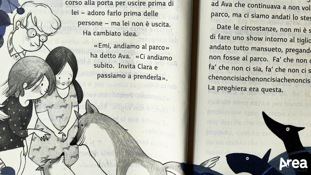 Pubblicato da Uovonero nella collana I geodi con la traduzione di Francesco Ferrucci, il libro di Inés Garland offre una storia che parla di faccende ed emozioni molto riconoscibili e vicini al giovane lettore – amori, amicizie e rivalità, vergogna, lutto, paura e cyberbullismo, solo per citarne alcuni – ma che lo fa da un punto di vista inatteso come può essere quello di un cane: scelta, questa, che dona al racconto un distacco, un filtro e un’ironia davvero apprezzabili e gustosi. Due altri aspetti del libro, dal canto loro, meritano particolare attenzione: le fini illustrazioni di Maute Matuberria, che uniscono un tratto lieve e un uso mirato e incisivo del colore, e le caratteristiche grafiche di alta leggibilità, che restituiscono alla pagina un aspetto arioso e poco opprimente.