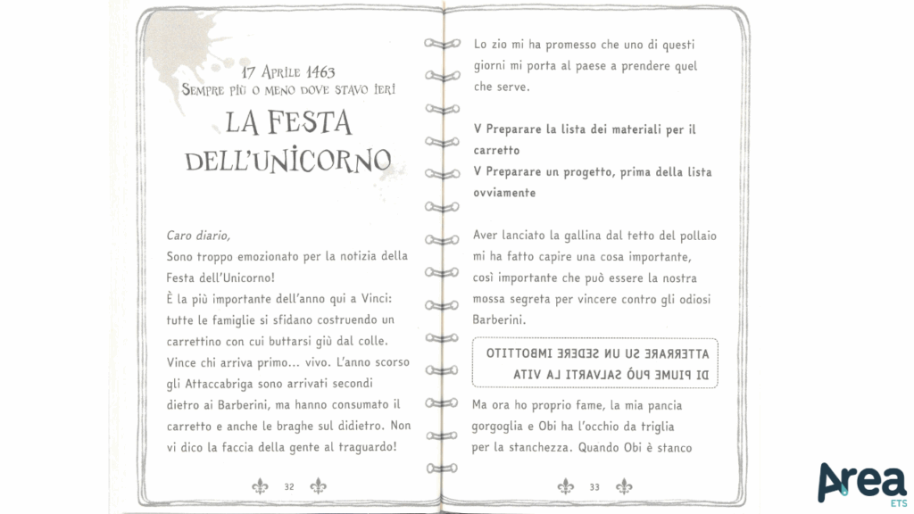 Leonardo Da Vinci doveva essere un bel tipino, da piccolo. Vien facile, in effetti, figurarsi che fin dalla più tenera età, un genio creativo e fuori dagli schemi come lui potesse essere costantemente alle prese con domande e invenzioni stravaganti. Proprio così, con indole curiosa e intraprendente, ce lo racconta Stella Nosella che per la casa editrice Storybox immagina e confeziona un ipotetico diario del giovane inventore.