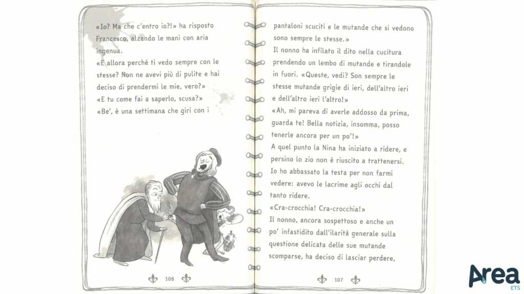 Il libro, che fa parte di una collana di strampalatissimi diari tra cui quello di Cenerentola e quello di Tutankamon, appare scorrevole e abbordabile. Contraddistinto da uno stile discorsivo e colloquiale, il volume presenta una grafica amichevole e ariosa, ideale per accogliere anche lettori dislessici, come con tutta probabilità era anche lo stesso Leonardo. Apprezzabili, in particolare, la spaziatura maggiore non solo tra lettere, parole e righe ma anche tra paragrafi e il ricorso al font EasyReading. Non ultimo, l’espediente di riportare, qua e là, qualche riga al contrario, invitando il lettore a decifrarla tramite l’uso di uno specchio, contribuisce a rendere la lettura più giocosa e al contempo restituisce un’idea della difficoltà che alcuni lettori sperimentano di fronte al testo scritto.