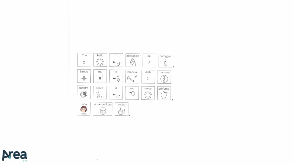 Luca, la mamma torna! è un tipo particolare di libro in simboli. Si tratta, infatti, di quella che potremmo definire una “storia sociale narrativa” ossia di una storia sociale resa più gradevole, coinvolgente e accattivante grazie alla costruzione di una cornice narrativa.