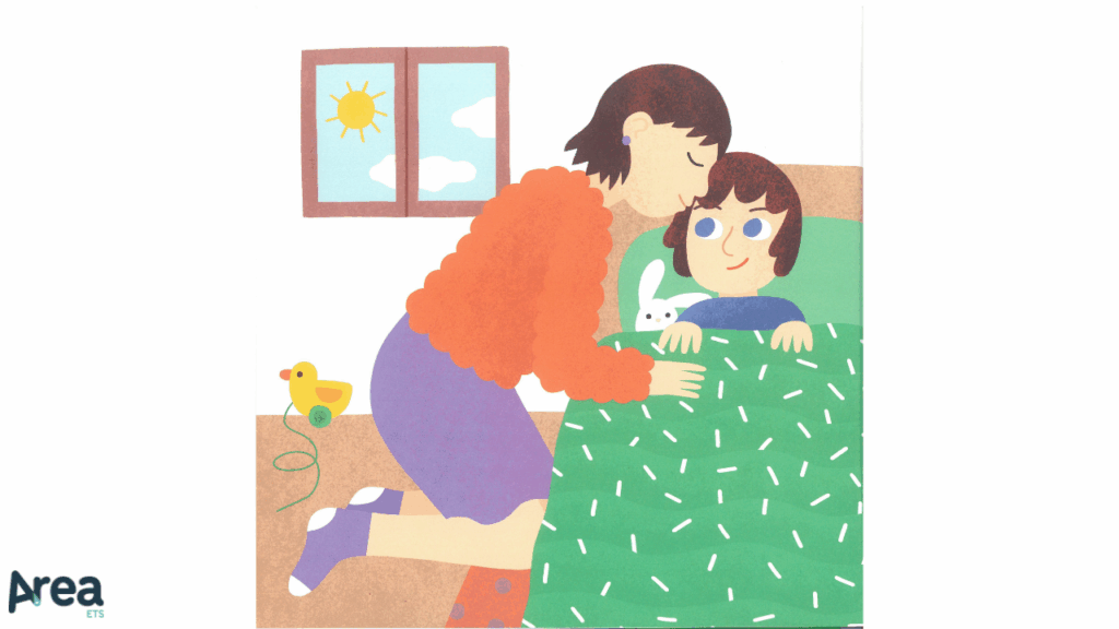 Nel caso di Luca, la mamma torna!, la storia sociale mira ad aiutare il l lettore a capire che anche se la mamma si allontana quando lui è a scuola, tornerà a prenderlo dopo un po’ di tempo e che in quel tempo è normale sentire un po’ di nostalgia ma anche provare a superarla giocando, lasciandosi coccolare dalla maestra e ricordando il rito dell’abbraccio del coraggio rinnovato al momento del saluto.
