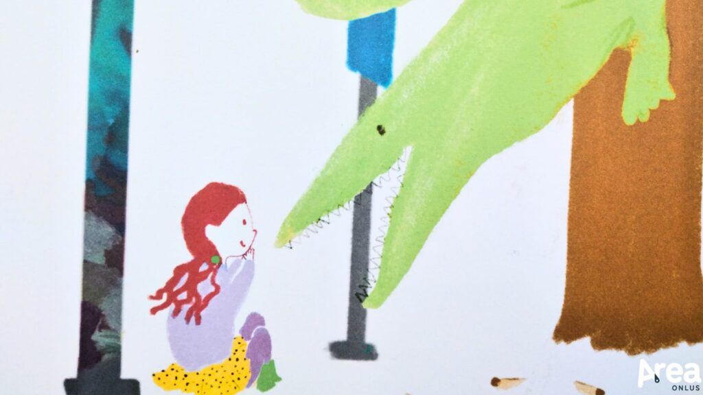 Il tratto di Violeta Gomez è volutamente impreciso, talvolta abbozzato. Privi di contorni davvero netti e di dettagli minuziosi, i suoi personaggi parlano piuttosto con i colori e le posture, rivelando in pochi tratti lo stato d’animo che li pervade. La cifra espressionistica dell’autrice concorre d’altro canto a valorizzare la sovrapposizione tra dimensione reale e dimensione fantastica che caratterizza il volume e che muove la narrazione. Le inferenze richieste al lettore per distinguere i due piani e riconoscere come si intreccino non sono né minime né scontate: per questo il libro si rivolge in particolar modo a quei lettori che trovino stimolante e non ostacolante la presenza di passaggi narrativi impliciti o appena accennati.