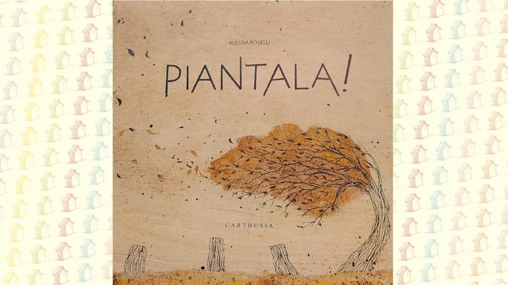 Piantala! è una storia di scontro e di riavvicinamento tra l’uomo e la natura. All’inizio del libro incontriamo infatti un uomo munito di sega che con metodo abbatte, uno dopo l’altro, gli alberi di un bosco. Il paesaggio si fa sempre più desolato ma gli animali che lo popolano non ci stanno e a turno mettono in atto la loro personale vendetta. Così, se prima sono cacche che cadono dagli uccelli in volo, poi sono pigne scagliate dagli scoiattoli e punture di api e infine sono minacce ringhiose di lupo. Impaurito, l’uomo di rifugia sull’unico albero rimasto e qui rimane fino al calare della sera. Sarà allora che il valore di fusti e chiome gli sarà finalmente chiaro e che il suo atteggiamento nei confronti della natura cambierà di segno, a tutto vantaggio degli animali così come suo.