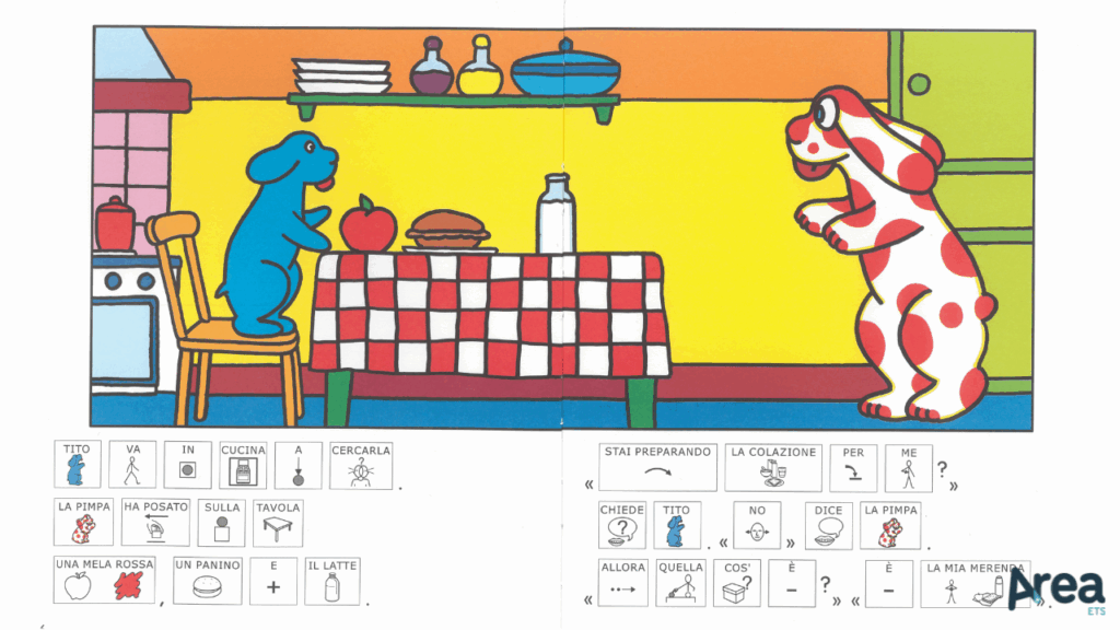 Quest’anno Pimpa festeggia 50 anni tondi tondi. C’è forse un modo migliore per celebrare un traguardo così importante di rendere accessibili le avventure della cagnolina più amata d’Italia anche a chi fino ad ora non ha potuto farlo? Probabilmente no! Ecco allora che l’iniziativa curata da Franco Cosimo Panini in collaborazione con la Fondazione Paideia appare quantomai felice: l’editore ufficiale di Pimpa e la fondazione torinese molto attiva nella creazione di supporti in CAA hanno infatti dato vita a una serie di storie di Pimpa con il testo supportato visivamente dai simboli WLS.