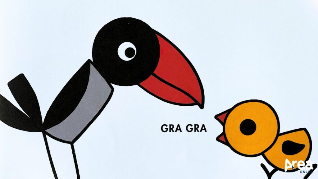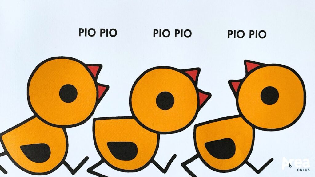 Tratto essenziale, figure evidenti, colori pieni, contorni netti: la cifra di Attilio Cassinelli è inconfondibile, tanto nelle sue fiabe illustrate quanto nei suoi libri senza parole o onomatopeici. Pio pio bau bau rientra in questa seconda categoria. Il libro, che fa parte di una collana di quattro titoli intitolata I senza parole di Attilio, presenta un formato che si sviluppa in orizzontale, perfetto per mettere in valore il lungo cammino del suo protagonista: un pulcino intraprendente che supera il recinto del pollaio per avventurarsi nei dintorni, prima di fare ritorno dai suoi cari. Il suo è un viaggio ricco di incontri: una capra, un cane, varie rane e cornacchie incrociano il suo cammino e a ogni tappa il pulcino impara un verso diverso che si esercita a replicare. Grande è lo stupore di mamma chioccia nel sentirlo belare, abbaiare, gracidare e gracchiare. Basta, però, il pigolio dei fratelli per far ritrovare al pulcino la strada e i suoni di casa…