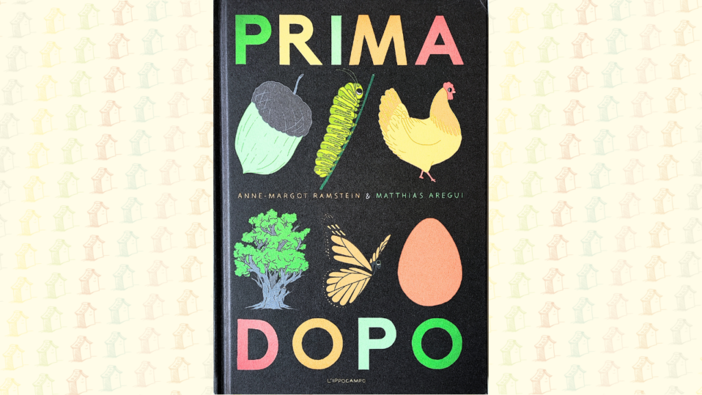 Il volume, edito da L’ippocampo, presenta una successione di mini-sequenze ciascuna composta da due tempi: quel che c’è prima e quel che c’è dopo. La notte e il giorno, la ghianda e la quercia, il lavoro all’uncinetto e il gioco nella neve, la casa vissuta e quella diroccata, l’alveare e il barattolo di miele, la zucca e la carrozza… Sono più di 80 i racconti minimi che i due autori mettono su carta, attingendo al mondo naturale e a quello fantastico e spingendosi talvolta oltre la misura della doppia pagina (gli ingredienti che diventano torta, che a sua volta diventa briciole; l’albero che affronta tutte e quattro le stagioni) o imbastendo più livelli temporali (la candela che arde e che si consuma e, subito dopo, il lume olio che cede al posto all’abat-jour elettrica) e semantici (la tela vuota e il quadro finito seguiti dalle matite intere e dalle matite mozze).