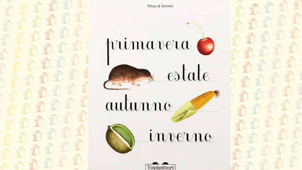 I libri difficili da incasellare riservano spesso splendide sorprese. Primavera, estate, autunno, inverno, dal canto suo, non fa eccezione. Originale dal punto di vista del contenitore – uno spesso volume con pagine in cartoncino rilegate a spirale – il libro di Pittau e Gervais risulta ancora più particolare nel contenuto. Si tratta, di fatto, di una sorta di imagier in cui ogni pagina riporta il nome e l’immagine di un fiore o di un frutto tipico di una delle 4 stagioni. A raccontarlo così sembrerebbe, a dire il vero, un libro piuttosto ordinario. A renderlo speciale, però, concorre più di un aspetto.