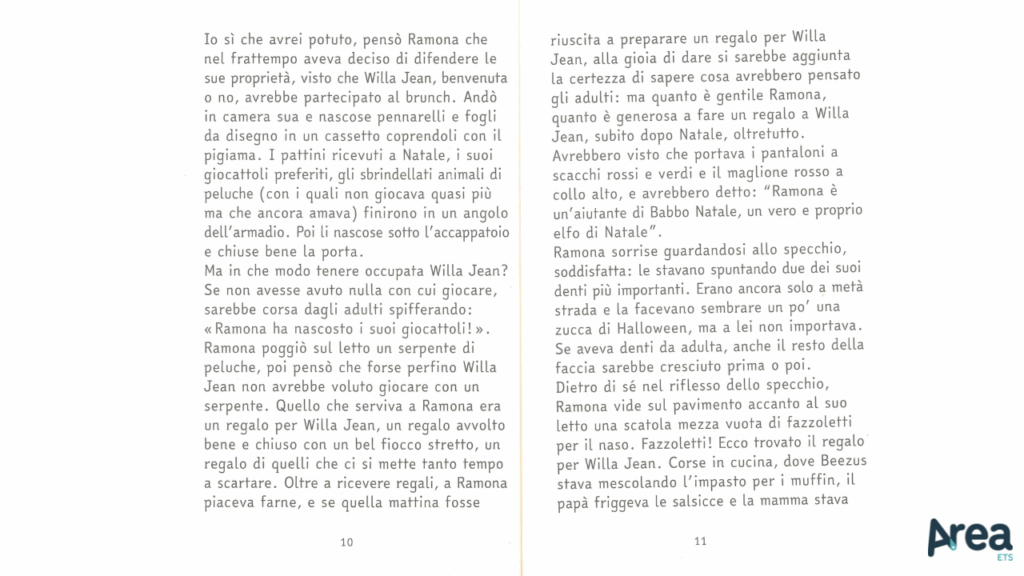 Rispetto ai primi volumi della serie, Ramona e la sua mamma ha un ritmo meno incalzante e un tono più introspettivo. L’autrice è molto brava, con la sua penna, a delineare il percorso di crescita e cambiamento dei suoi personaggi, rendendoli verosimili e amabili non solo nell’immediato ma anche sul lungo periodo. D’altronde Ramona si fa grande e anche il suo pensiero si fa più articolato, riflessivo. Lo stile della narrazione è però sempre fresco, pimpante e scorrevole. Pluripremiata autrice americana, Beverly Cleary sa come raccontare episodi di vita quotidiana, più e meno straordinari, con un tocco ironico e con uno sguardo che li rende irresistibili.