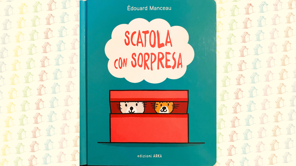 Scatola con sorpresa di Édouard Manceau si apre, manco a dirlo, con una scatola rossa ben chiusa. Da quella scatola, a partire dalla seconda vignetta, fa capolino un micio che esce, trova a sua volta una scatola azzurra da cui – sorpresa! – esce un amico, un piccolo coniglio. I due si avviano insieme (muovendosi sempre verso destra) e compiono un lungo viaggio durante il quale incontrano un gran numero di scatole, ciascuna delle quali contiene nuovi incontri e/o nuovi ambienti in cui muoversi. Così, in una sequenza molto dinamica, i due si imbattono in un’orchestra allegra, in un mostro buffo, in una motocicletta, in un pesce, in una foresta, in un equipaggiamento da campeggio, in una mongolfiera, in un barattolo, in un arco, in un’auto e in un paesaggio marino… Come si combinino questi elementi per dar vita a piccole spassose e ingegnose vicende non lo riveleremo. Si sappia, però, che quelle che possono sembrare delle innocue scatole di cartone possono contenere tutti gli ingredienti necessari per vivere un’avventura degna di questo nome. Potere dell’immaginazione!