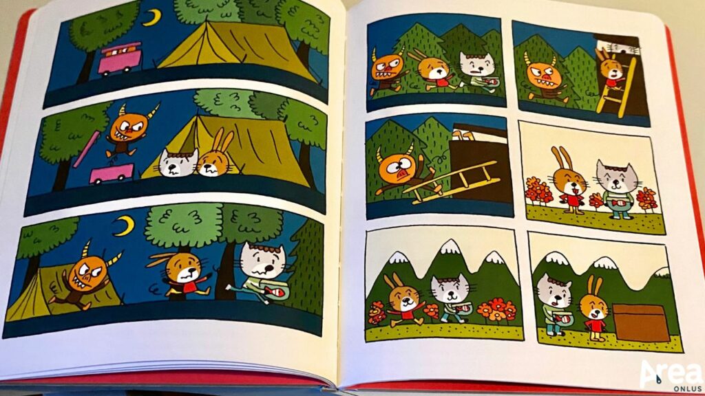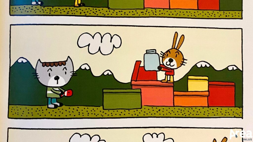 Edizioni Arka ha portato in Italia un delizioso progetto editoriale di origine francese: una collana di fumetti senza parole per bambini intitolata Le nuvolette (originariamente: Mini bulles). I volumi che la compongono si caratterizzano per un tipo di racconto estremamente fruibile nella misura in cui l’accessibilità legata alla narrazione per immagini si somma a quella dettata dalla partitura regolare delle vignette.