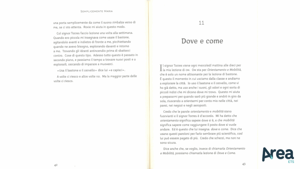 Pubblicato da Uovonero all’interno della collana dei Geodi, Semplicemente Maria presenta, infine, interessanti caratteristiche di alta leggibilità (spaziatura maggiore, font Test me, sbandieratura a destra, carta opaca e color crema) che ne rendono la lettura più amichevole anche in caso di dislessia.