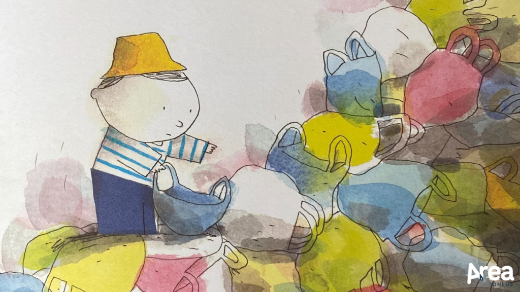 I temi ambientali fanno spesso capolino all’interno degli albi firmati da Barroux. Ti voglio bene, Blu non fa eccezione: i danni provocati dall’abuso e dalla dispersione della plastica nell’ambiente mettono, infatti, a rischio la vita di Blu, una balena gentile che fa amicizia con il protagonista dell’albo. Intraprendente e socievole, quest’ultimo ha le fattezze di un bambino ma naviga in solitaria con la sua barchetta e conosce Blu durante una tempesta. È proprio la balena a metterlo in salvo dalle onde in quel pericoloso frangente e da quel momento il legame tra i due si fa saldo e forte. Così, quando un giorno Blu non si presenta al consueto appuntamento e non risponde ai richiami del bambino, quest’ultimo si tuffa a cercarla e la scopre afflitta dall’ingestione di corpose quantità di sacchetti. Con pazienza e dedizione il bambino riesce a liberarla da questo fardello, riportandola al sorriso e alla voglia di scherzare insieme.
