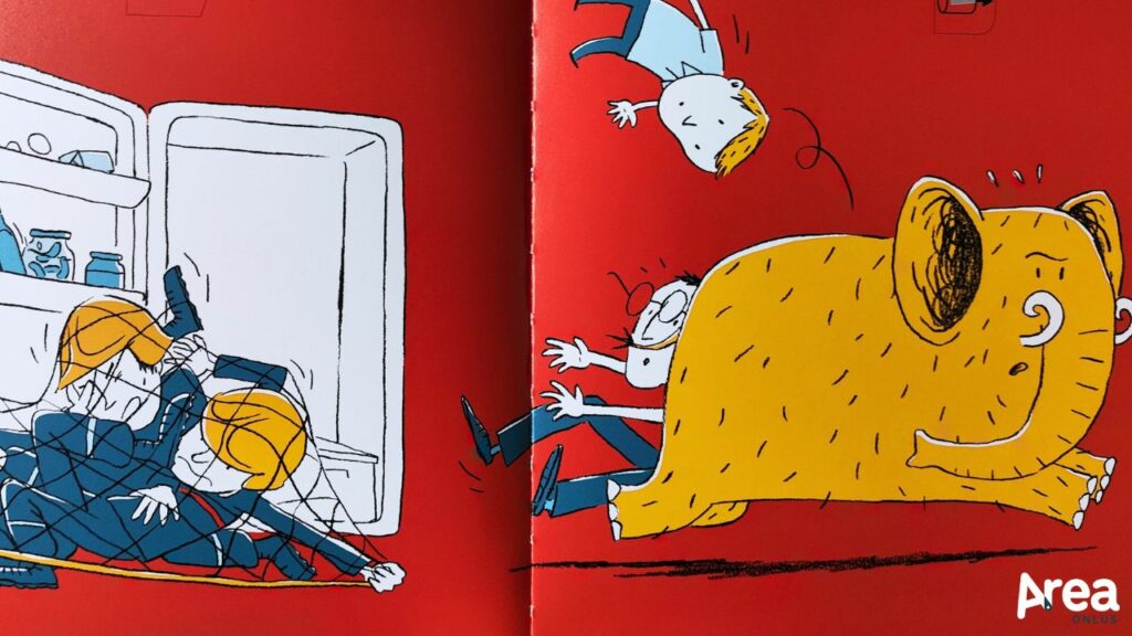 Un mammut nel frigorifero, uno dei titoli a cui i due autori francesi hanno dato vita, non fa eccezione. Divertente, surreale e sorprendente, il libro racconta di quella volta in cui la famiglia protagonista si ritrova nel frigorifero un preistorico pachiderma. Come l’animale sia finito lì dentro, non è inizialmente dato saperlo. Quel che si sa è che il mammut, da lì, deve sparire: serve dunque l’intervento dei pompieri. Tutto è pronto per la cattura ma la preda è scaltra e riesce a fuggire su un albero nelle vicinanze. Tocca farla scendere ma il mammut è tenace, non molla e anzi si sistema tra le fronde per schiacciare un pisolino. E così, uno alla volta, pompieri e famigliari desistono e ritornano ai propri affari. Scesa la notte, però, qualcosa succede. Qualcuno, in particolare, si attiva nuovamente per far scendere il mammut. Il motivo non lo sveleremo: basti sapere che, come d’abitudine, l’insospettabile aspetta dietro l’angolo il lettore!