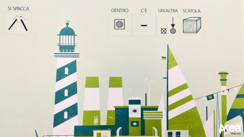Con Una scatola gialla prosegue la felice avventura de I libri di Camilla, collana curata da Uovonero con lo scopo di offrire in versione simbolizzata alcuni degli albi più amati, editi negli anni da case editrici diverse, rendendoli finalmente fruibili anche a un pubblico con difficoltà comunicative. Rispetto ai volumi precedenti, Una scatola gialla è soggetto a qualche aggiustamento in più, funzionale a una più chiara e soddisfacente lettura in simboli. Così, per esempio, le proposizioni coordinate e subordinate vengono spezzettate in frasi più brevi e alcuni elementi delle illustrazioni (come gli ingrandimenti dei personaggi di volta in volta coinvolti) scompaiono, rendendo la pagina più pulita e le sue componenti più distinte. Si tratta di adattamenti significativi ma ben calibrati dal momento che non ne risentono né il ritmo del testo, che continua a risultare ben scandito e incalzante, né i focus delle illustrazioni, che trovano espressione nei simboli collegati ai personaggi, gli unici a essere colorati all’interno della sequenza simbolica.